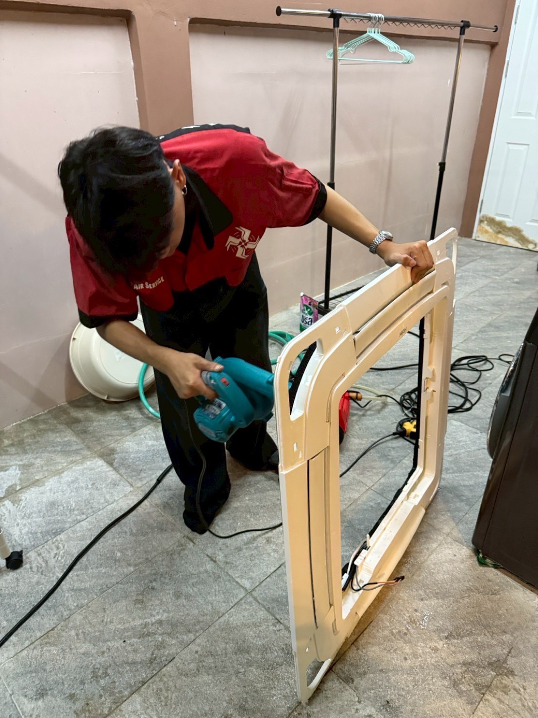 - ล้างทำความสะอาดแผ่นกรองอากาศ และส่วนประกอบของแอร์